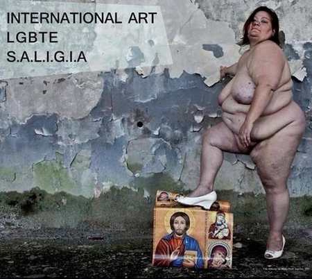 Una manifestazione giunta al suo settimo anno, l’internazionale d’arte LGBTE, nata come internazionale d’arte con artisti lgbt e opere afferenti a quell’area tematica, e dalla terza edizione divenuta lgbte, dove la e di etero trasforma l’acronimo in La Grande Battaglia Trova Esito, è in queste ore al centro di una polemica a causa della locandina che riproduce uno dei sette scatti del fotografo Mauro Pinotti dedicato a uno dei sette vizi capitali, tema di questa edizione della manifestazione che si svolgerà a Torino, la superbia, nel quale una donna obesa e nuda, poggia un piede che calza scarpe bianche con tacco su un poster raffigurante alcune icone sacre dell’arte cristiana.